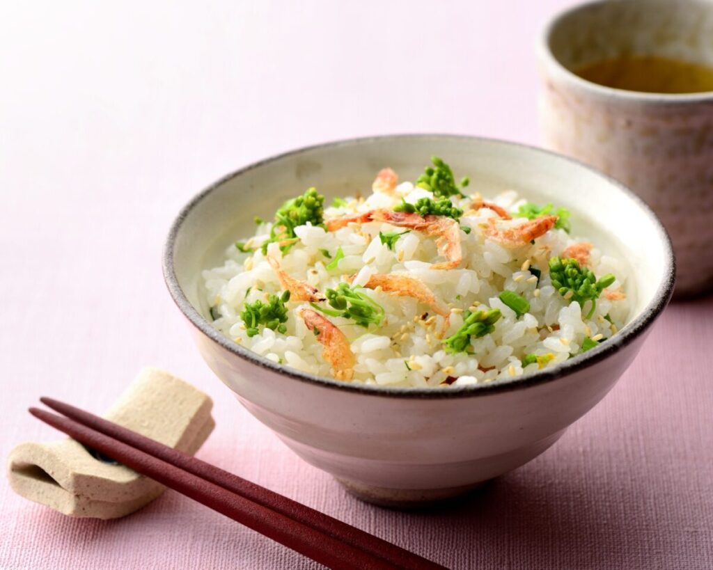 さてさて、ひな祭りのメニューに「菜の花と桜えびの混ぜご飯」はいかがでしょうか。
