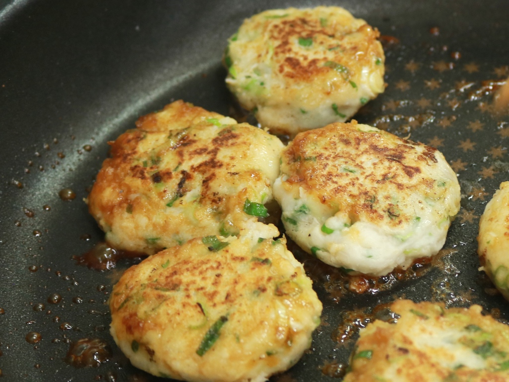 フライパンを熱し、混ぜ合わせた里芋を適当な大きさにし、中火で焼き色がつくように両面焼きます。